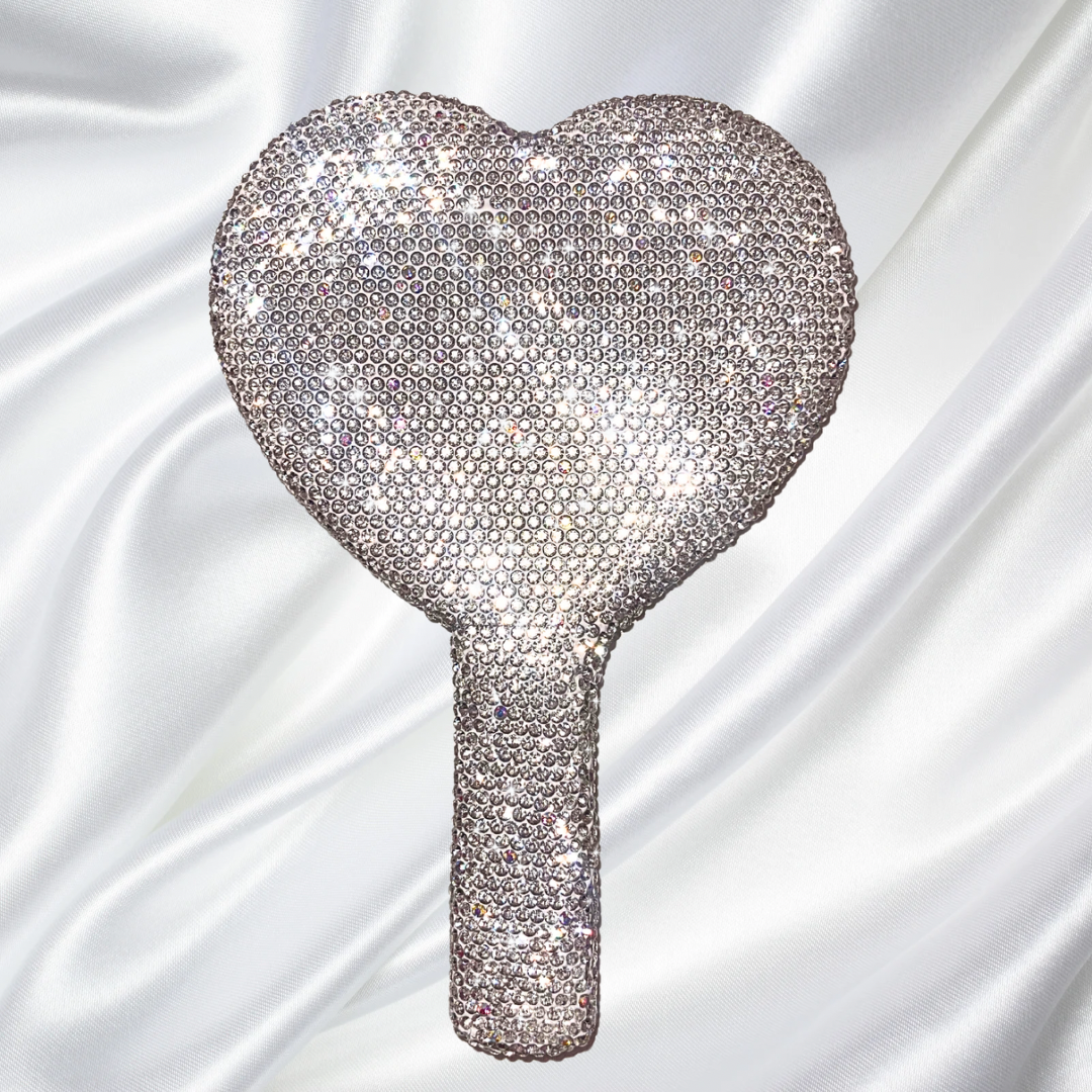 An ultra-bejeweled icy design, our 'VVS' Hand Mirror is encrusted with sparkling high-quality rhinestones that will mesmerize everyone's reflection. The perfect accessory to add a touch of glamour to every beauty space.